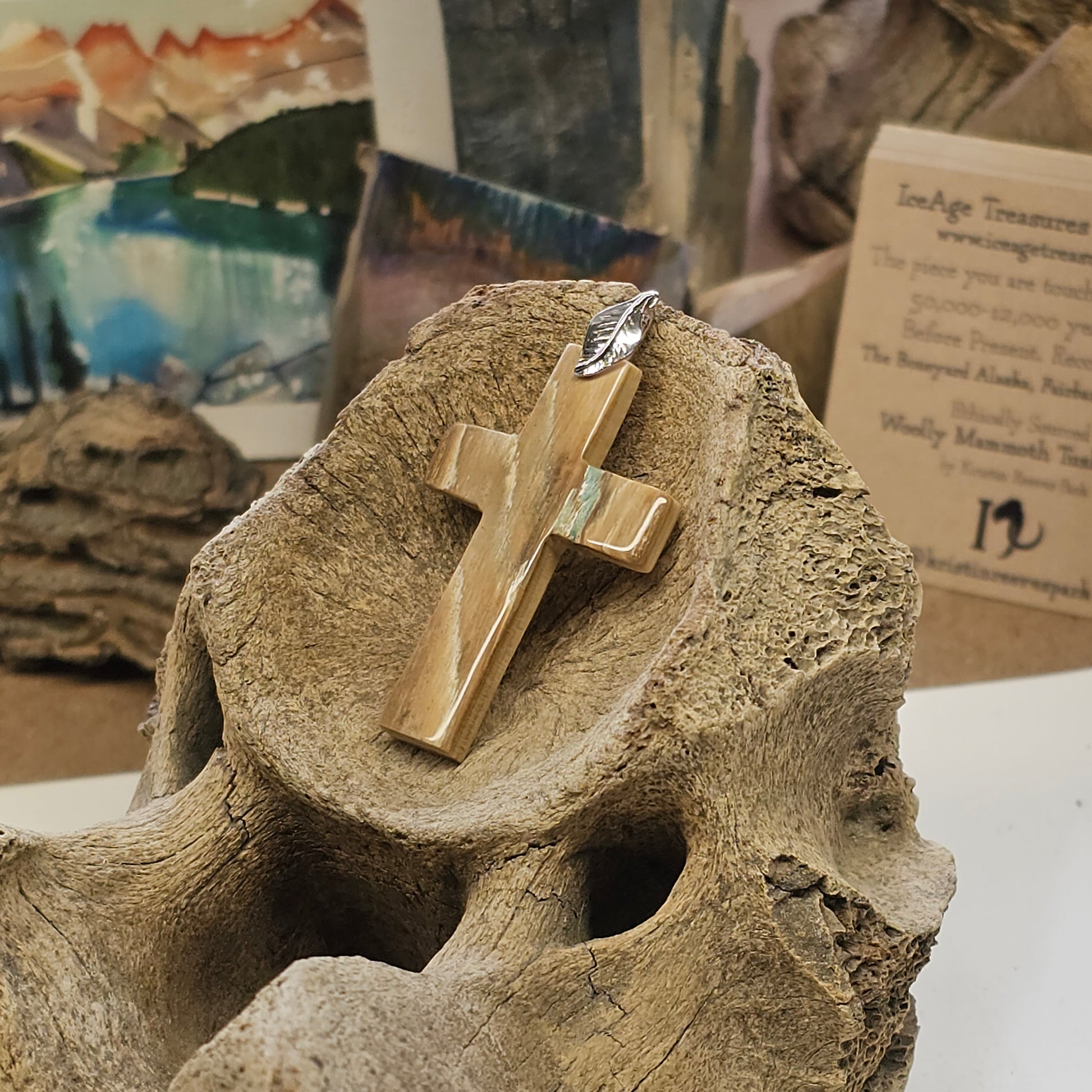 Boneyard Alaska Woolly Mammoth Ivory Carved Christian Cross Pendant