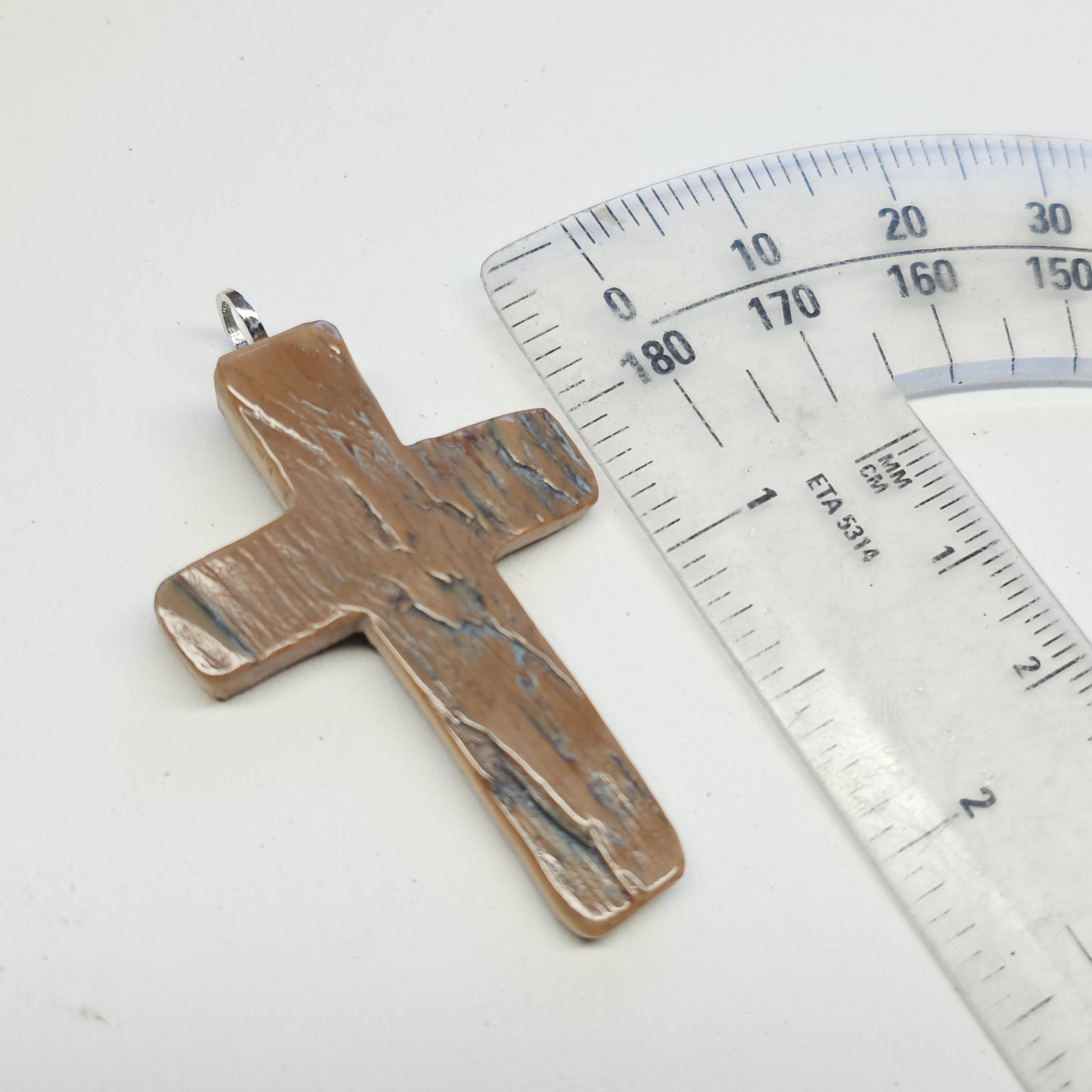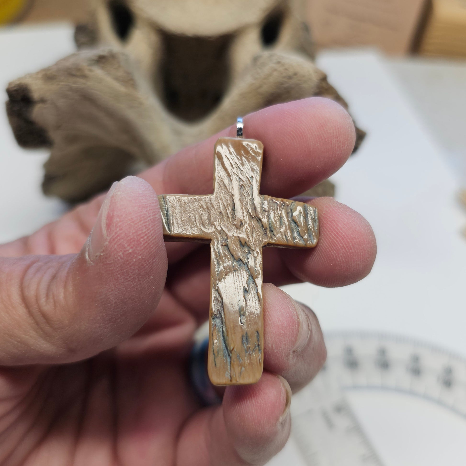 Boneyard Alaska Woolly Mammoth Ivory Christian Cross-Natural Bark Layer